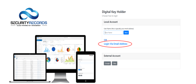 - Select "Login via Email Address"