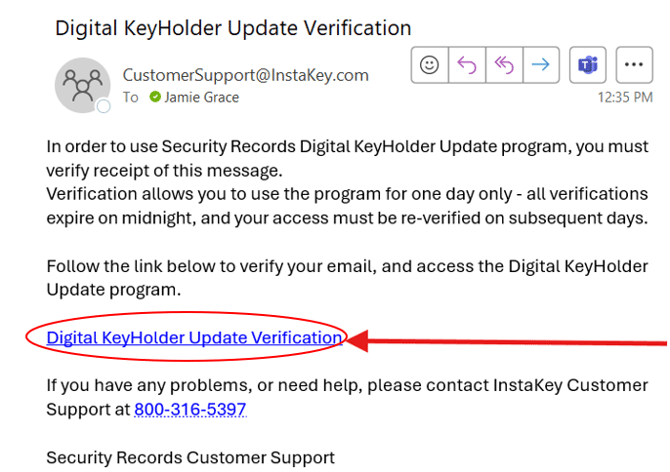 - If the verification email is not present, verify @InstaKey.com is listed as a safe sender in your settings and check junk mail folder