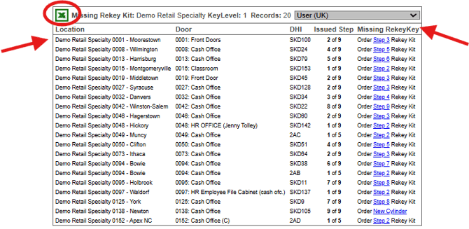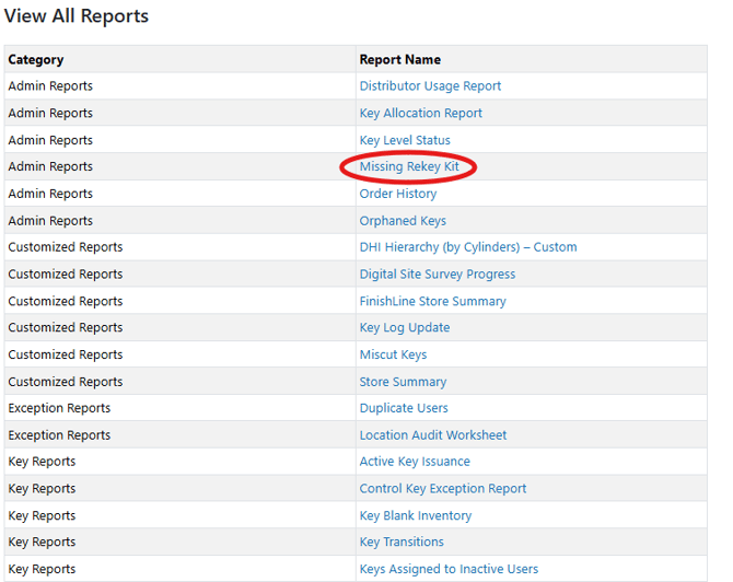 In the full Report listing, select "Missing Rekey Kit"