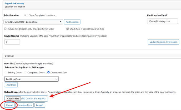 Once images for each Door on site have been uploaded, select “Complete Location” to submit your survey to InstaKey for review!