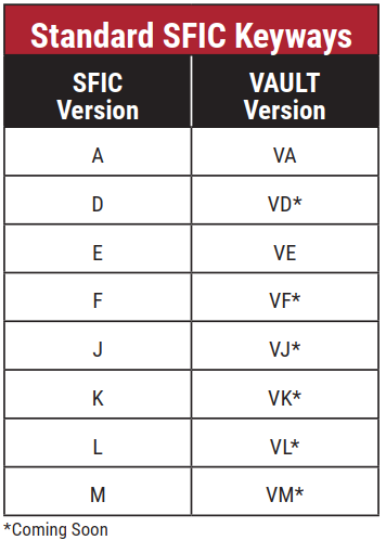 VAULT backward compatible keyways work with existing InstaKey restricted keyways (E-K) or Standard industry keyways (A-M).