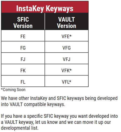 VAULT keys are backward compatible to InstaKey or Standard keyway cores