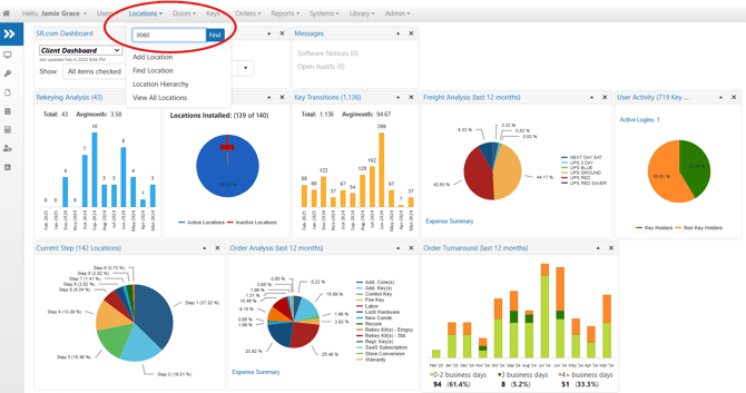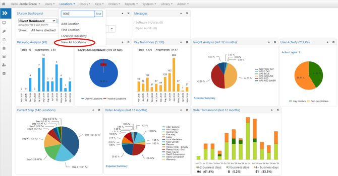If you are looking for information on a specific Location, select the Locations drop-down on the menu bar at the top of the screen. Type in the Location number (or name) and click Find.