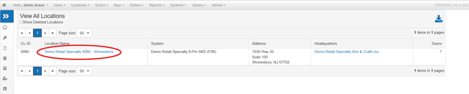Clicking on the name of the Location will bring you to the Location Detail page.