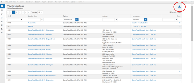 All Locations will be displayed by Location number. The entire list of Locations may be exported into Excel for further manipulation.